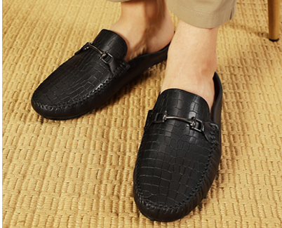 99Crafts Premium Quality European Full-Grain Milled Leather Handmade Driving Mules / Half Shoe For Men